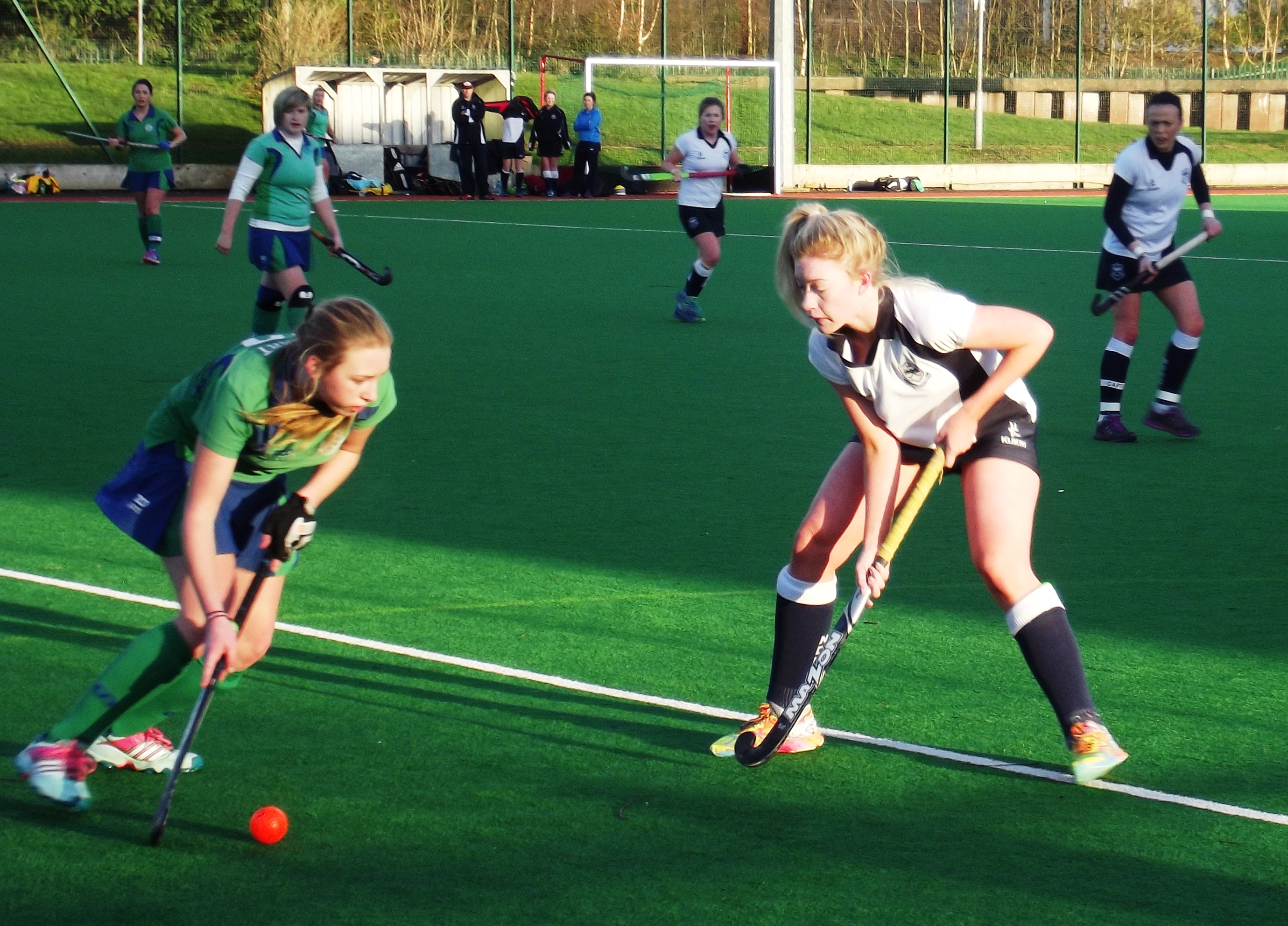 North Down started very brightly and there was no sign of a post Christmas hangover. The home side pressed forward at every opportunity and had Ballymena pegged back in their own half for most of the opening 10 minutes. With the visitors looking shaky, the Comber girls broke the deadlock. Good play down the left hand side from Caitlin Young and Lauren Brown saw the ball come into Katherine Hill at centre forward, she drove across the circle and had a flicked effort parried by the keeper however the ball fell to Olivia Brown at the right post and she made no mistake for her third goal in as many matches. North Down did not rest on their lead and while Ballymena did begin to form some meaningful attacks and threaten the circle, the Comber girls stretched their lead half way through the first half. Hill, who was causing all sorts of problems, picked the ball up out wide on the left and danced her way past a few defenders before smashing the ball into the right hand corner from a tight angle. The home side went into the break with a two goal lead but knew for all their dominance they should really have been out of sight.
